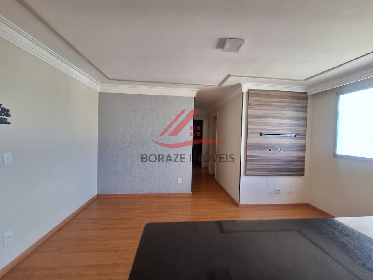 O imóvel apresenta uma planta muito bem distribuída, com ambientes acolhedores e acabamentos que valorizam cada espaço. A sala é ampla e convidativa, com elegante piso em porcelanato e rack instalado, criando um ambiente ideal para relaxar, receber visitas ou aproveitar momentos em família.