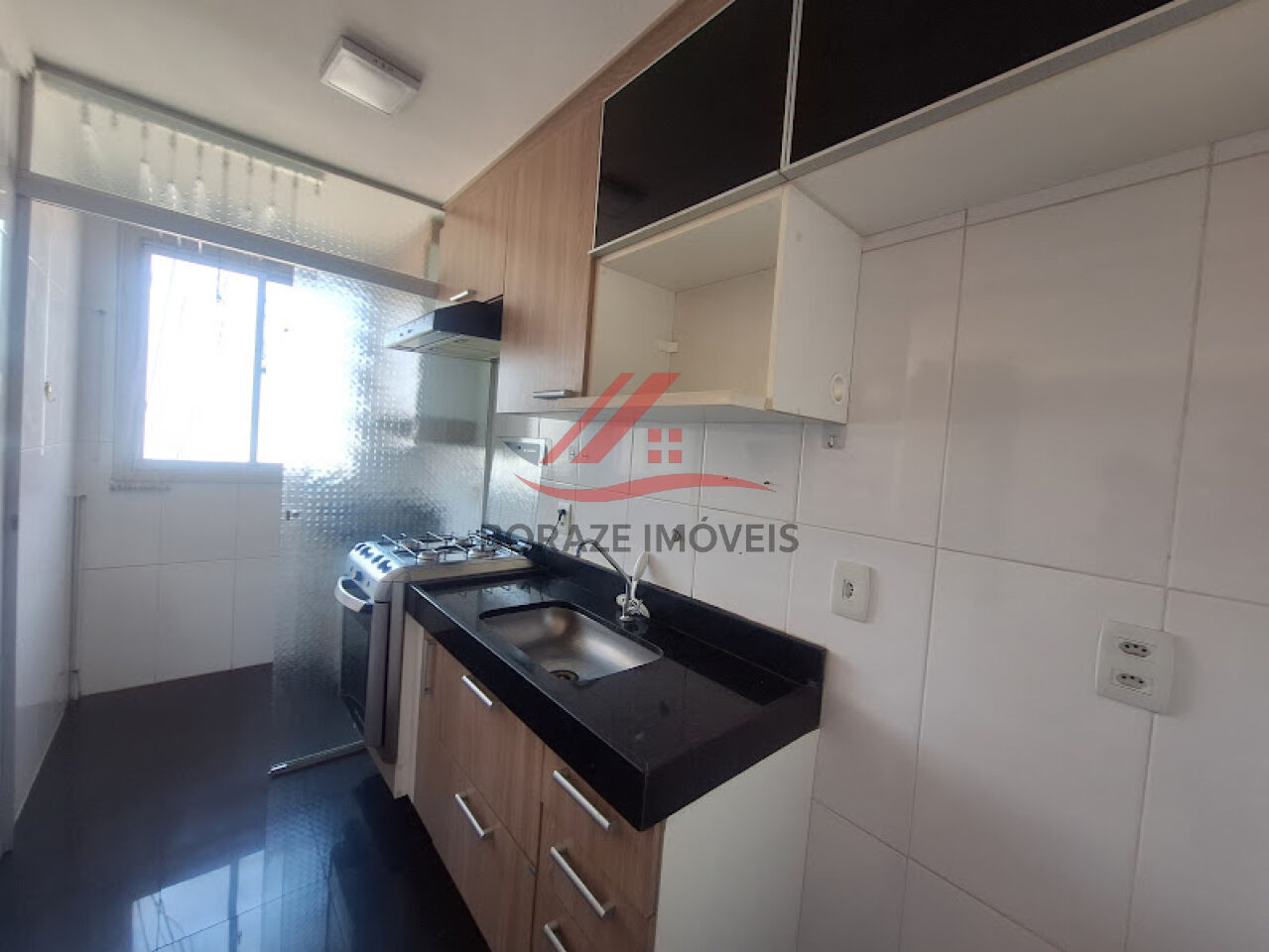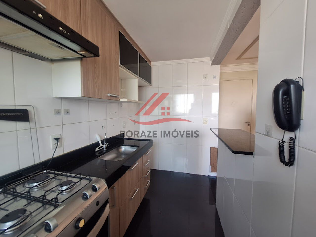 A cozinha americana traz um toque moderno e funcional ao apartamento. Equipada com armários planejados, fogão e coifa, além de belo piso em porcelanato, ela integra perfeitamente com a área social, proporcionando praticidade no dia a dia e um ambiente agradável para quem gosta de cozinhar e receber.