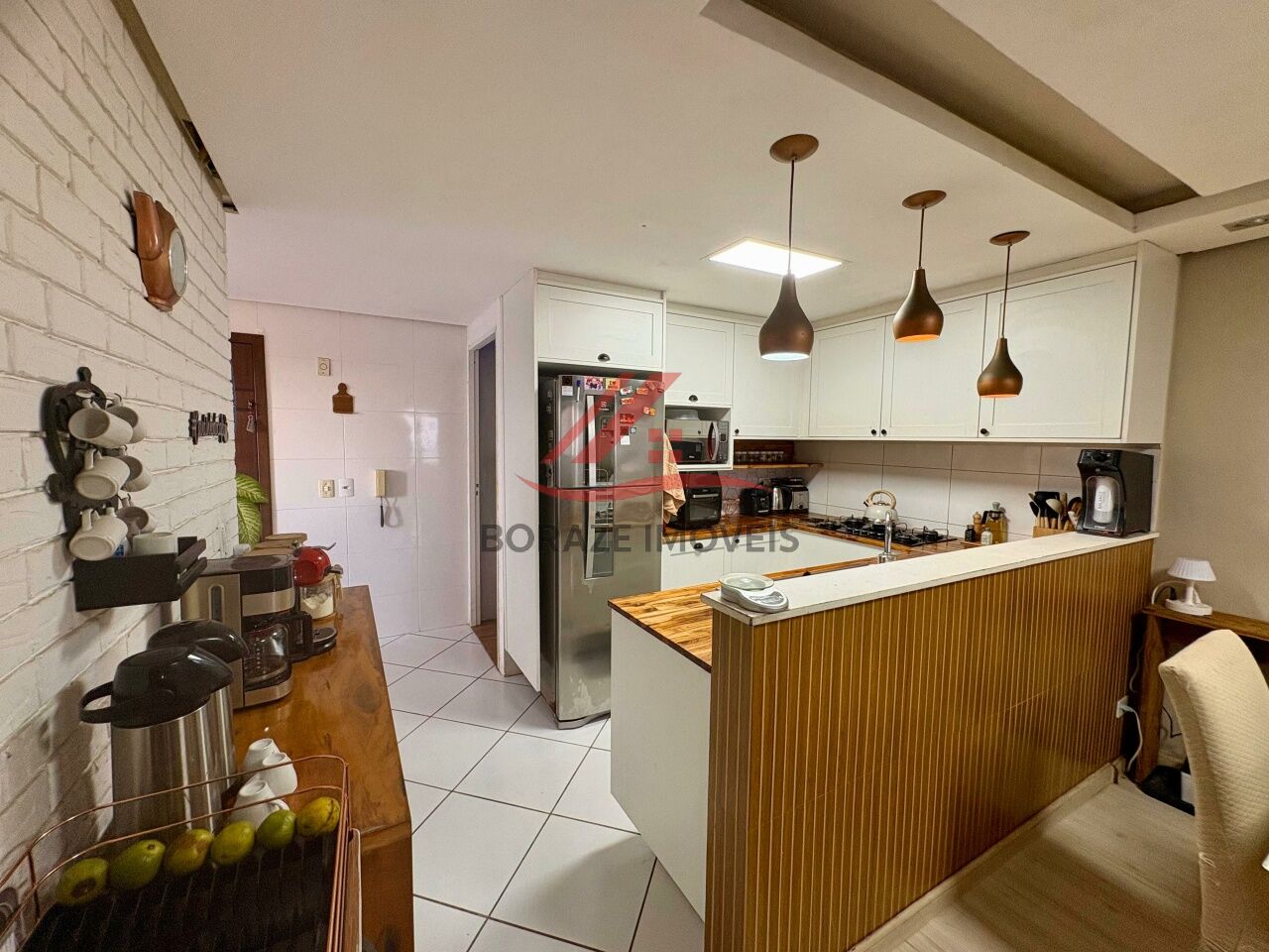 A cozinha planejada apresenta ótimo aproveitamento de espaço, perfeita para quem aprecia praticidade e organização. Conta ainda com área de serviço independente.