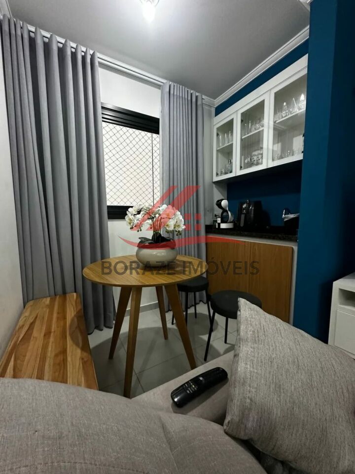 2 quartos com móveis planejados, sala para 2 ambientes, equipada e decorada, cozinha completa com móveis e eletrodomésticos, área de serviço integrada com lava e seca, banheiro funcional, 1 vaga de garagem coberta e fixa.