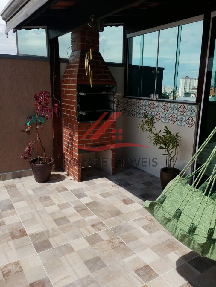 Na parte superior está o grande diferencial do imóvel: uma cobertura espaçosa com churrasqueira, perfeita para momentos de lazer. Possui fechamento em vidro, telhado colonial parcialmente coberto e vista livre, trazendo muita luminosidade e uma agradável sensação de amplitude. Neste espaço também há um lavabo e a lavanderia, o que traz praticidade para o dia a dia.