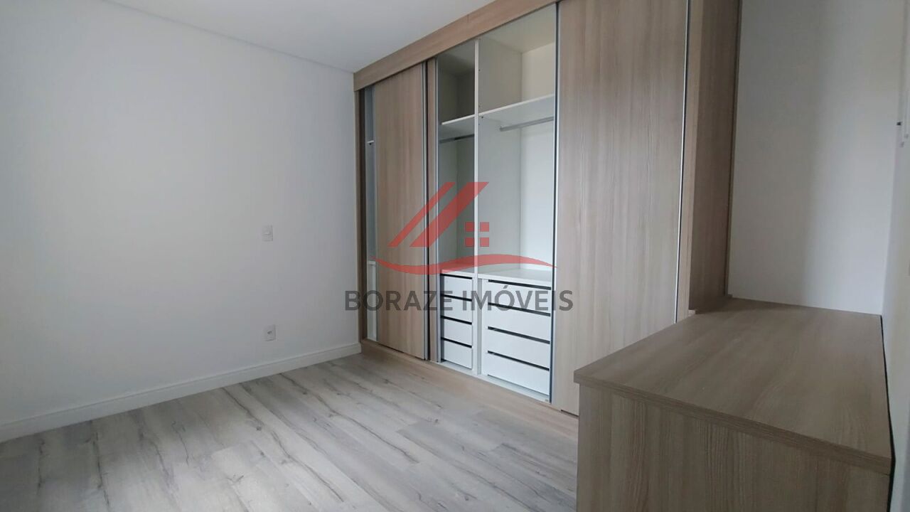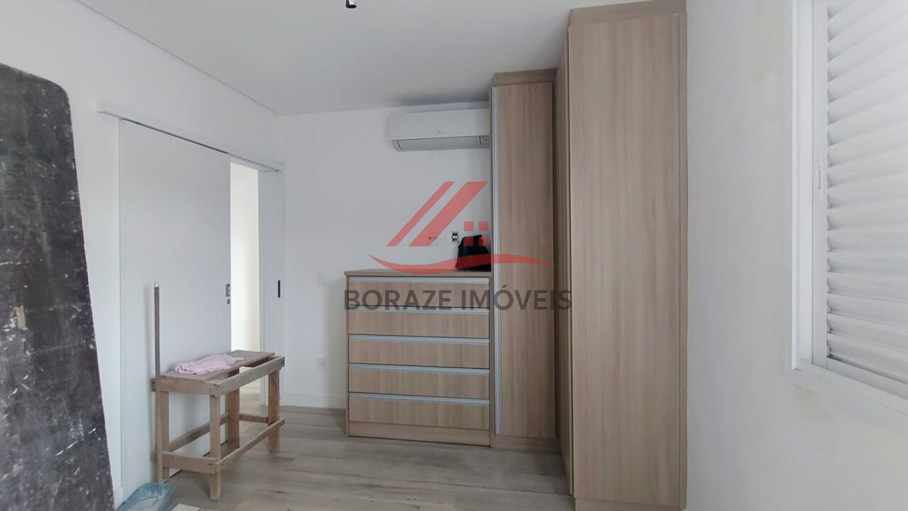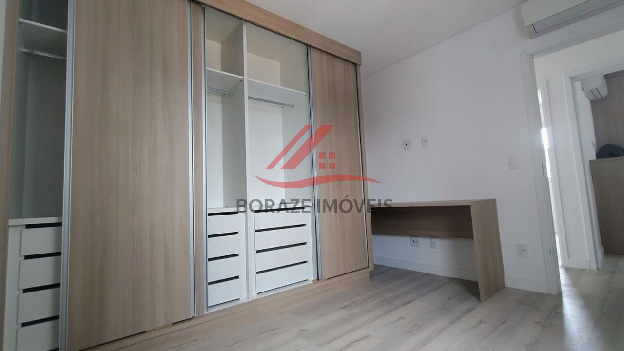 Quartos com piso laminado, guarda-roupas e ar-condicionado nos 3 dormitórios
