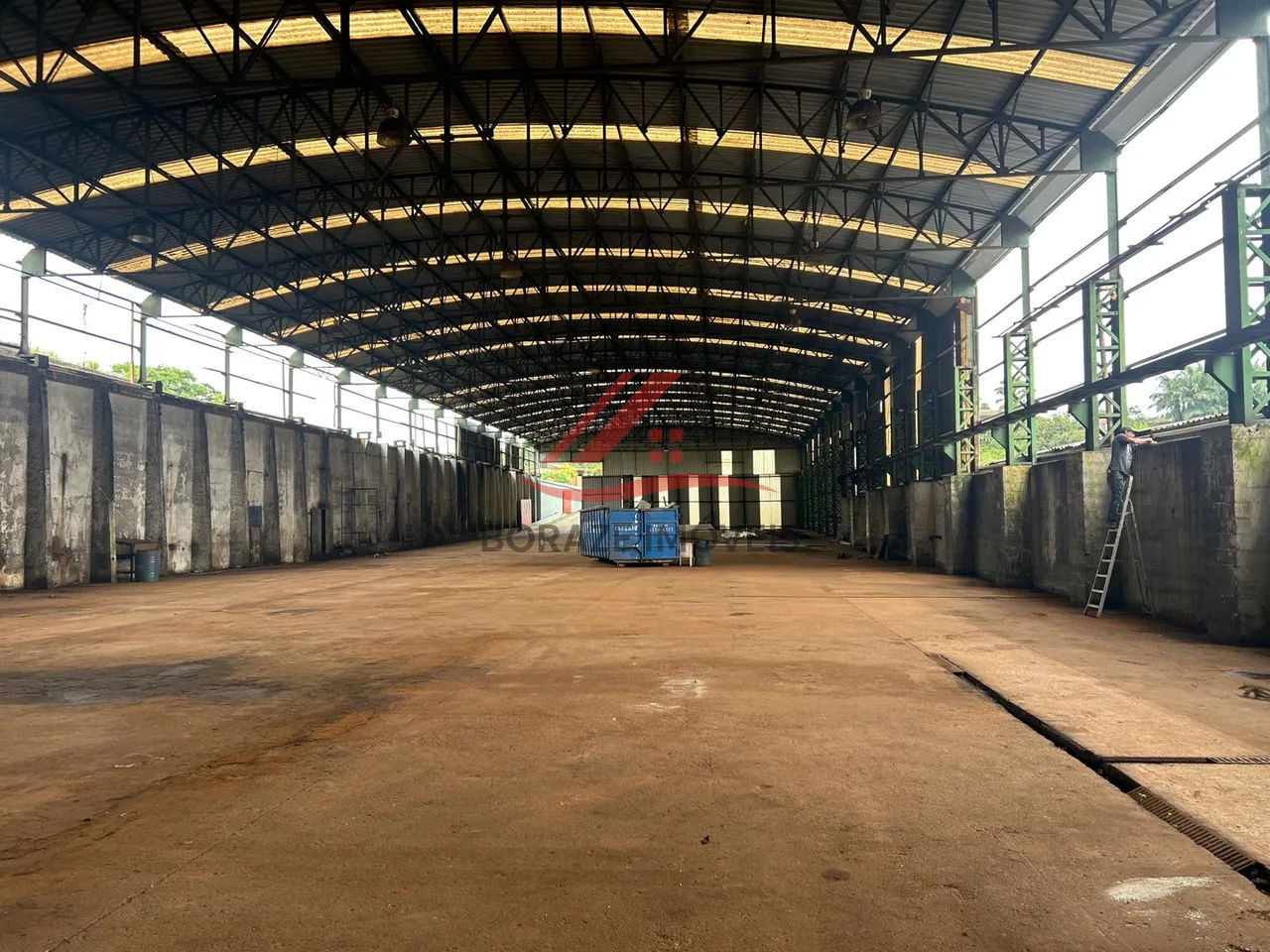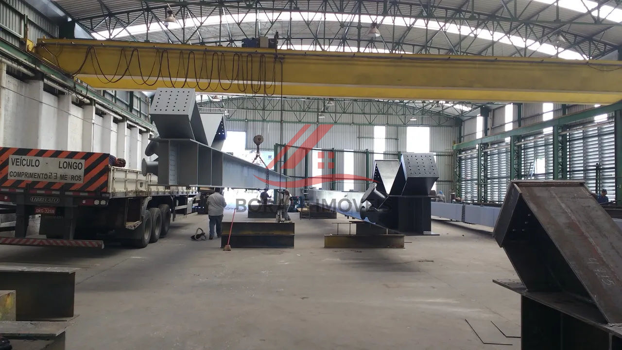 Pé direito de 8 metros livre. Vão livre (sem colunas) de 25 metros - estrutura do galpão para suportar várias Pontes Rolantes de: 20 TON, 10 TON e 3 TON.